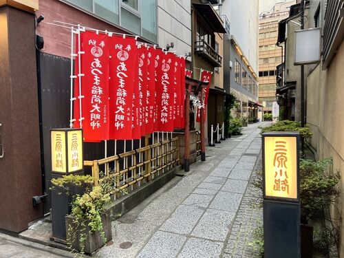 東京・関東巡り:記事一覧 社寺祠堂巡り:記事一覧 はじめに 前に紹介した靏護稲荷神社があるGINZA SIXの足元には、あづま通りが北東へ向かって伸びている。 このあづま通りから三原小路という路地に入ってすぐの所に、あづま稲荷大明神が祀られている。 あ…
